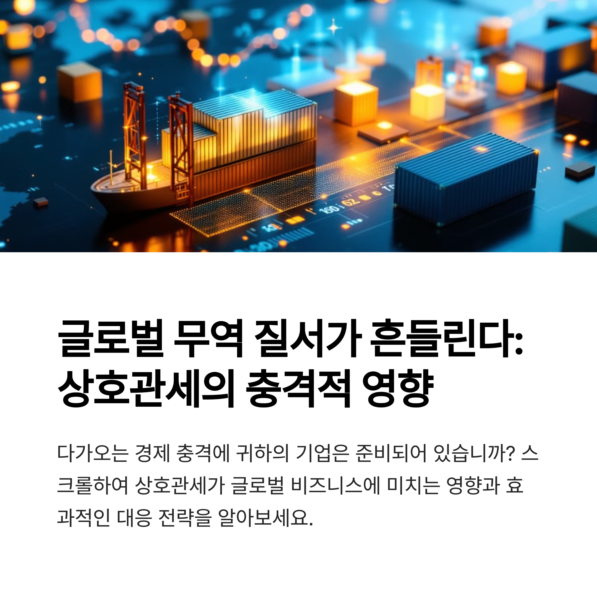 미국의 상호관세는 단순한 무역정책이 아닌 글로벌 경제 구조의 변화를 예고하는 신호탄입니다. 모든 기업과 국가가 이에 따른 리스크를 분석하고 전략을 세워야 하며, 기존의 자유무역 규범이 시험대에 올랐다고 볼 수 있습니다.