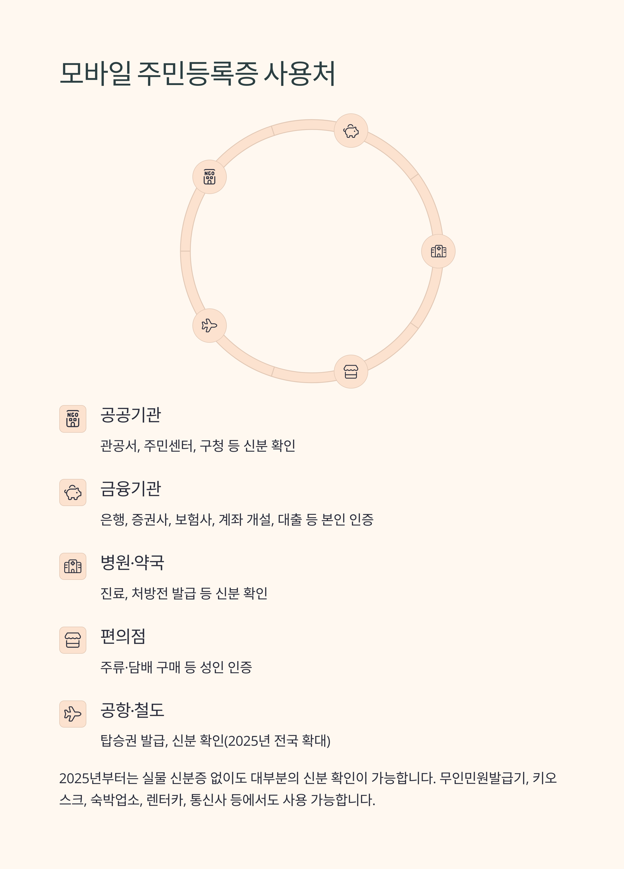 | 공항·철도 | 탑승권 발급, 신분 확인(2025년 전국 확대) |