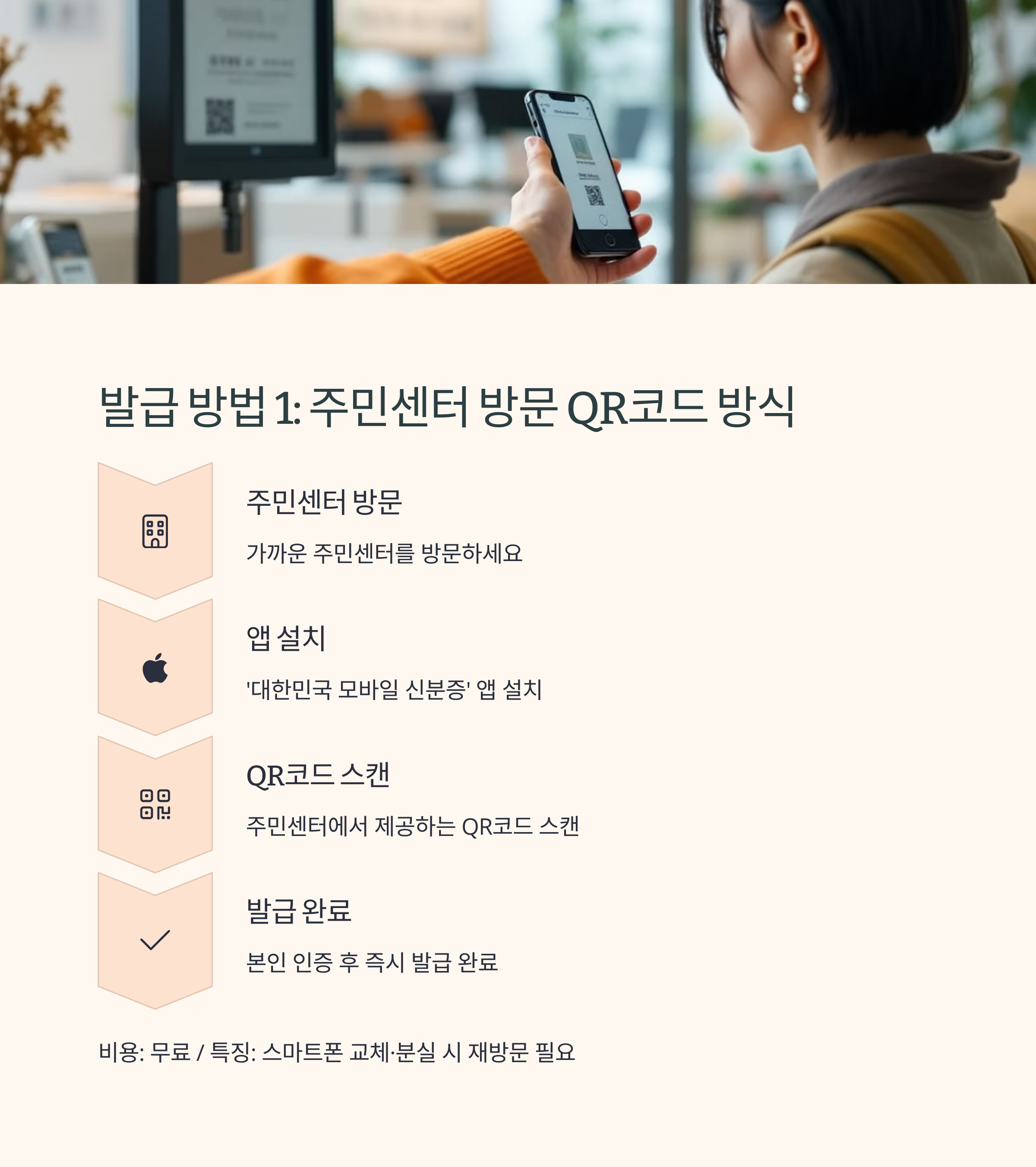 특징: 스마트폰 교체 시 재방문 없이 앱에서 재발급 가능