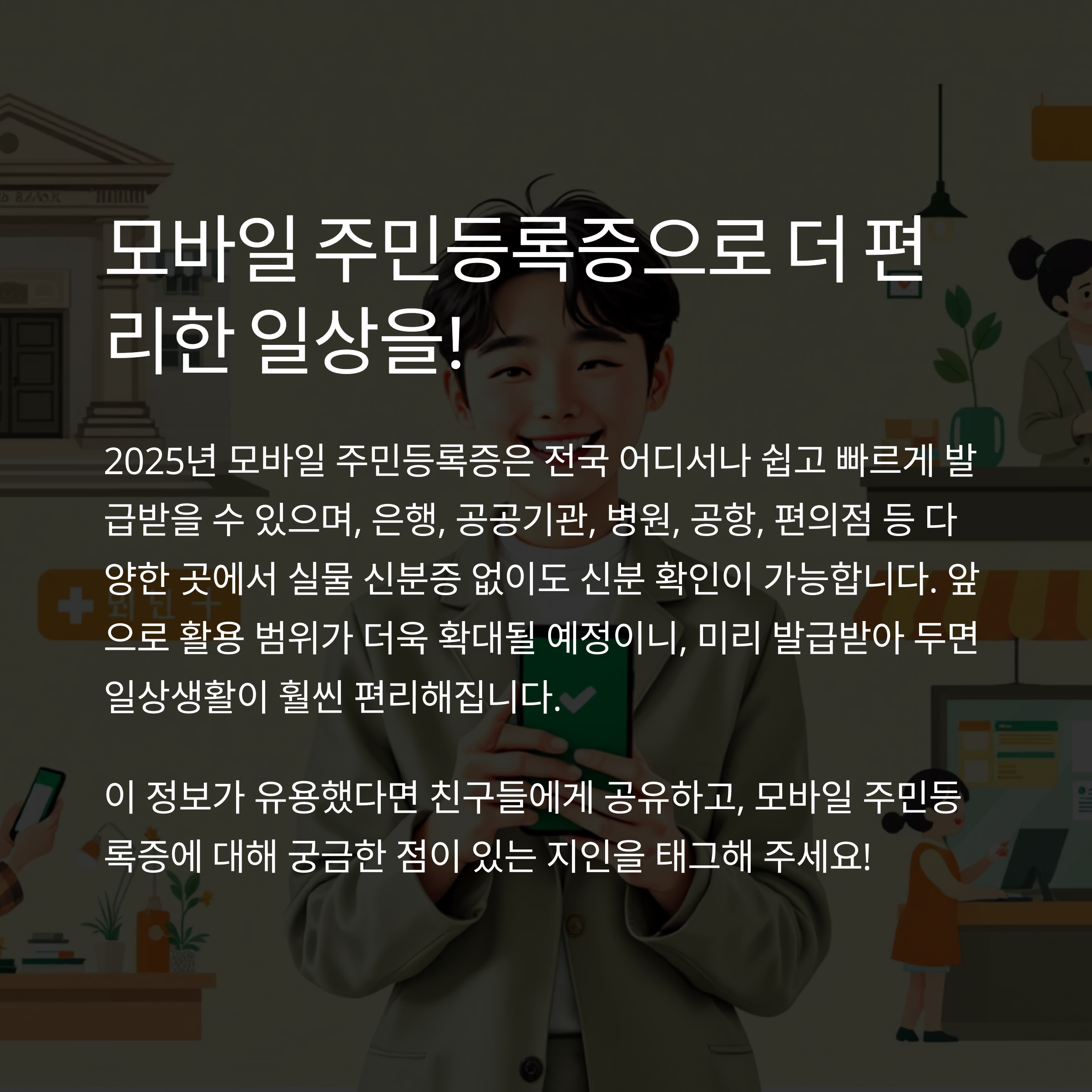 디지털 시대, 지갑 없이도 스마트폰 하나로 신분증을 들고 다닐 수 있는 시대가 열렸습니다. 여러분, 혹시 이런 적 있으시죠? 갑자기 신분증이 필요할 때 없어서 당황한 경험! 이제는 그런 걱정은 그만해도 됩니다. 2025년부터 본격 시행된 모바일 주민등록증, 이 글 하나로 완벽하게 정리해드릴게요.