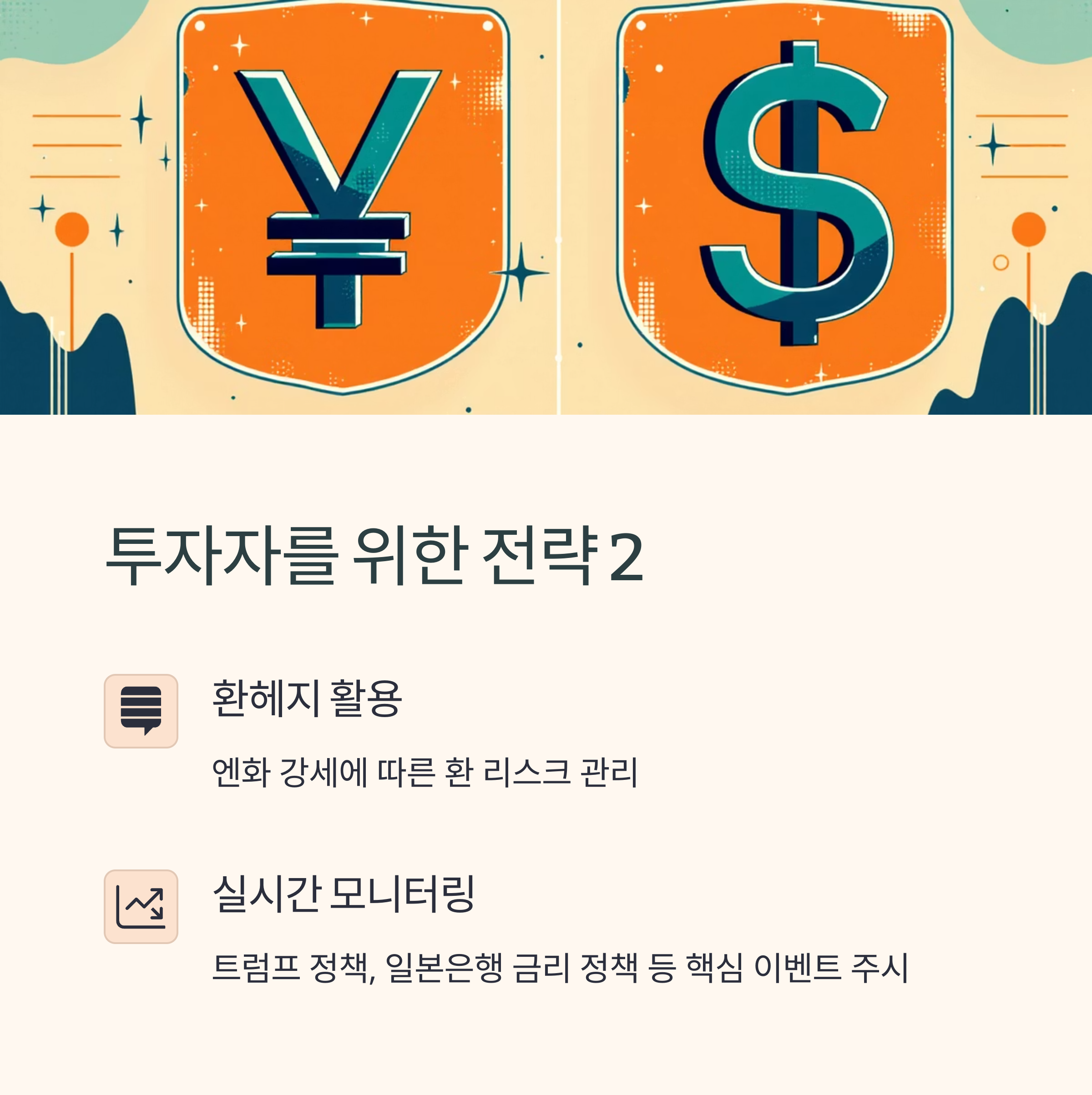 이는 안전자산 선호 심리를 자극하며 엔화 강세를 유발하고, 환율 하락의 악순환이 반복될 수 있습니다.