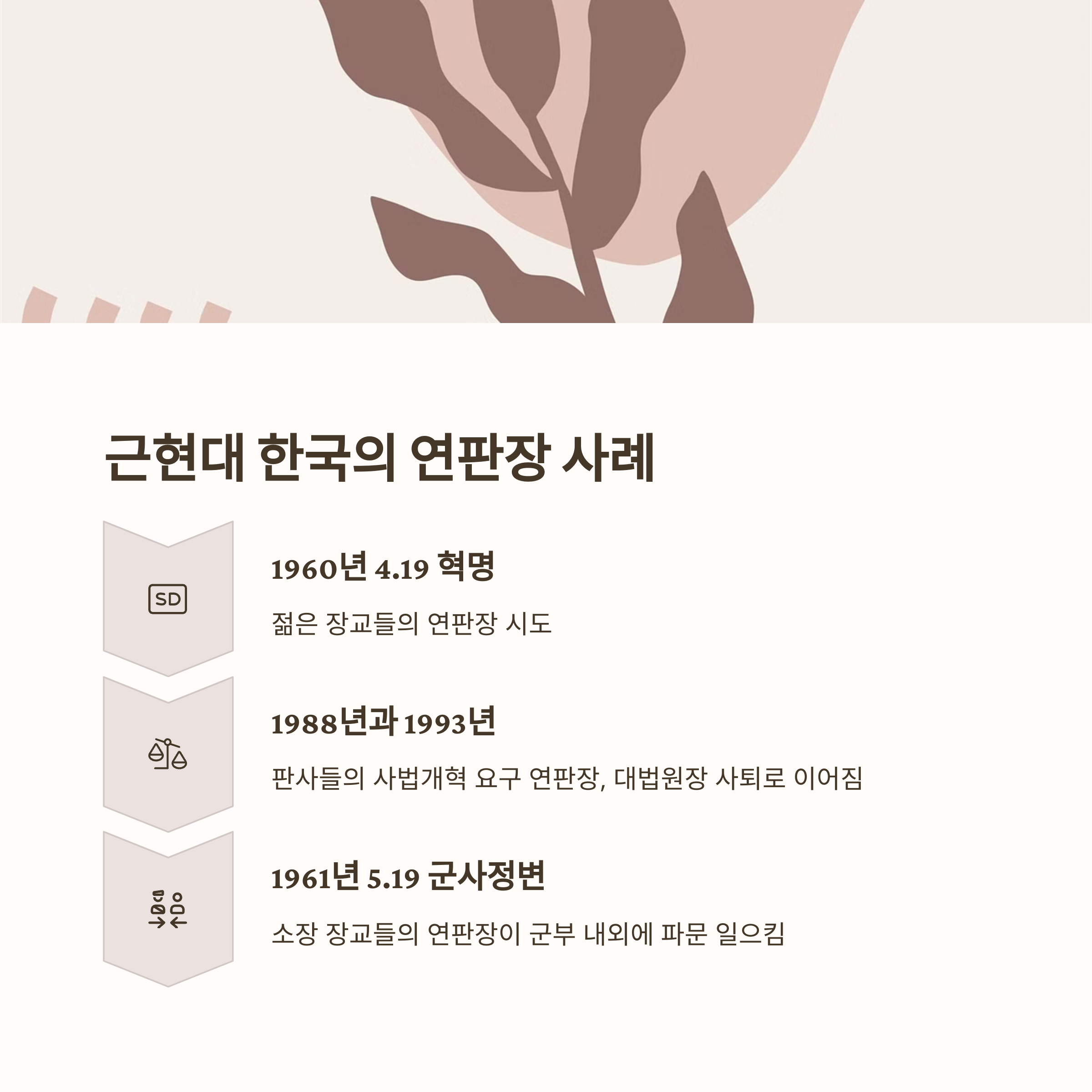 1988년과 1993년 - 한국의 판사들이 사법개혁을 요구하며 연판장을 작성했고, 이는 당시 대법원장의 사퇴로 이어지는 결과를 낳았습니다.