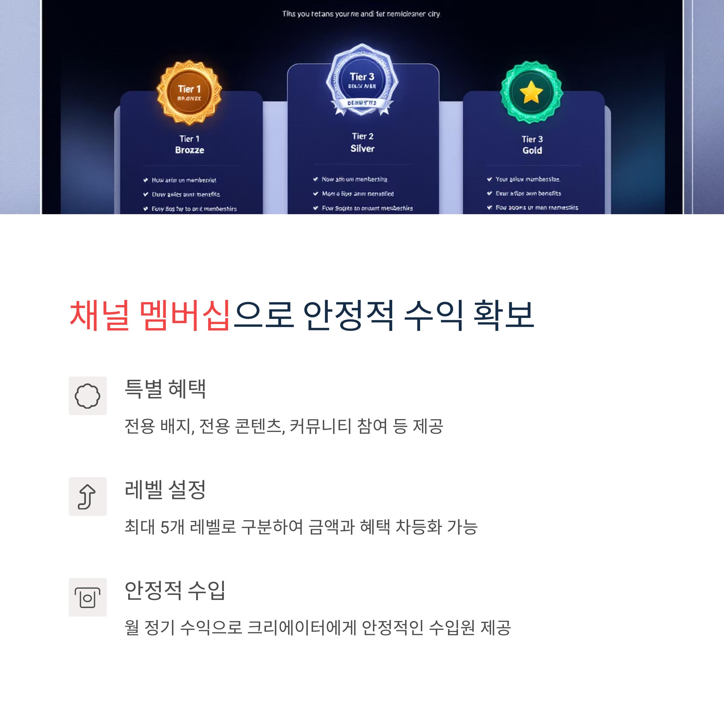 혜택 제공: 멤버십 가입자에게 전용 배지, 전용 콘텐츠, 커뮤니티 참여 등 특별 혜택 제공