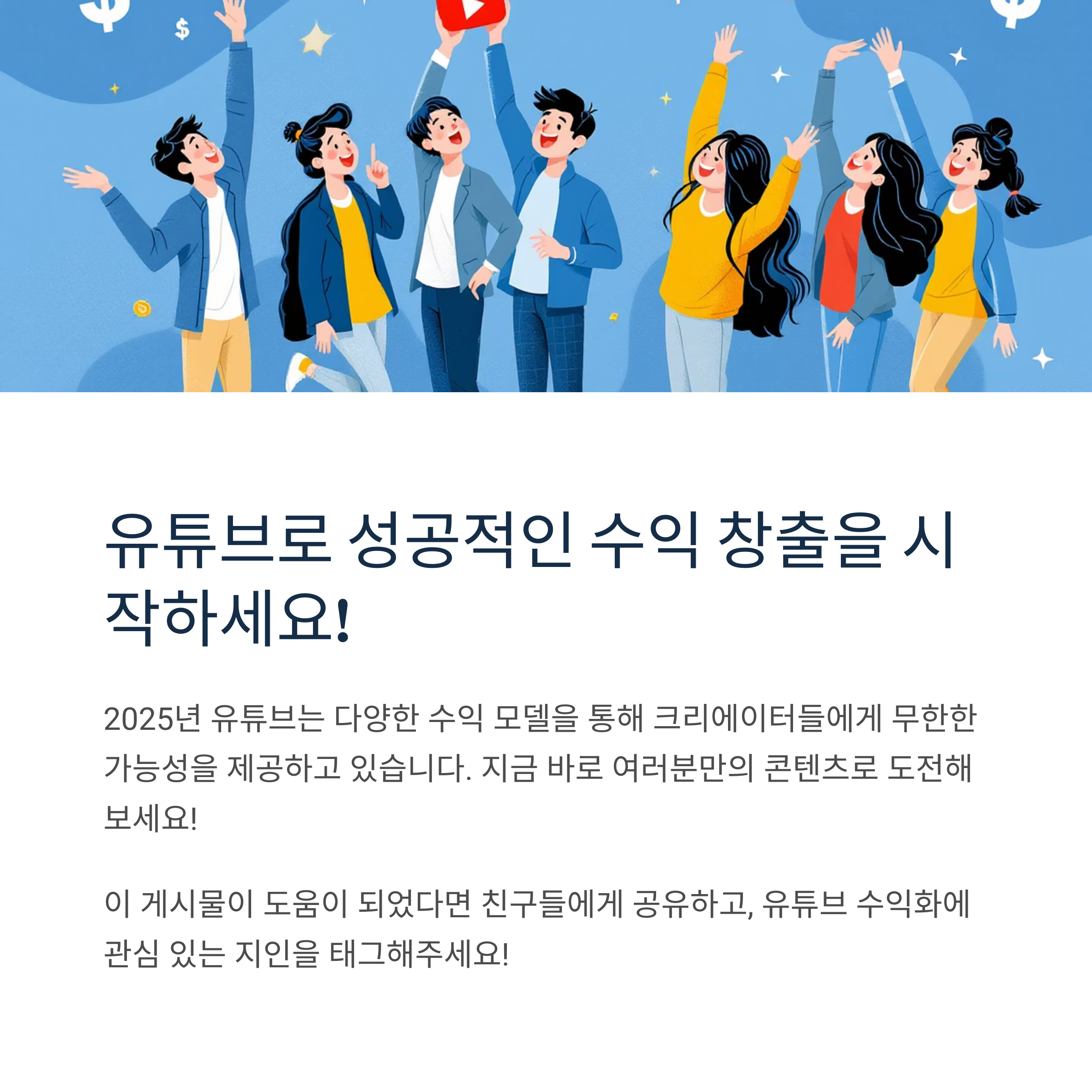 오늘 소개해드린 유튜브 수익 구조는 단순히 돈을 버는 방식 그 이상이에요. 크리에이터로서의 지속 가능성과 팬들과의 관계, 그리고 개인 브랜드 구축까지 연결되기 때문이죠. 2025년은 유튜브 수익 창출 방식이 더욱 다양해지고, 각자의 색깔을 가진 콘텐츠가 더욱 주목받는 시기입니다. 여러분도 자신만의 전략으로 유튜브 수익을 극대화할 수 있길 진심으로 응원할게요. 꾸준히 노력하고 콘텐츠에 진심을 담는다면, 유튜브 수익화는 분명 실현 가능한 목표입니다. 오늘의 정보가 도움이 되셨다면 댓글이나 구독으로 소통해주시면 감사하겠습니다.