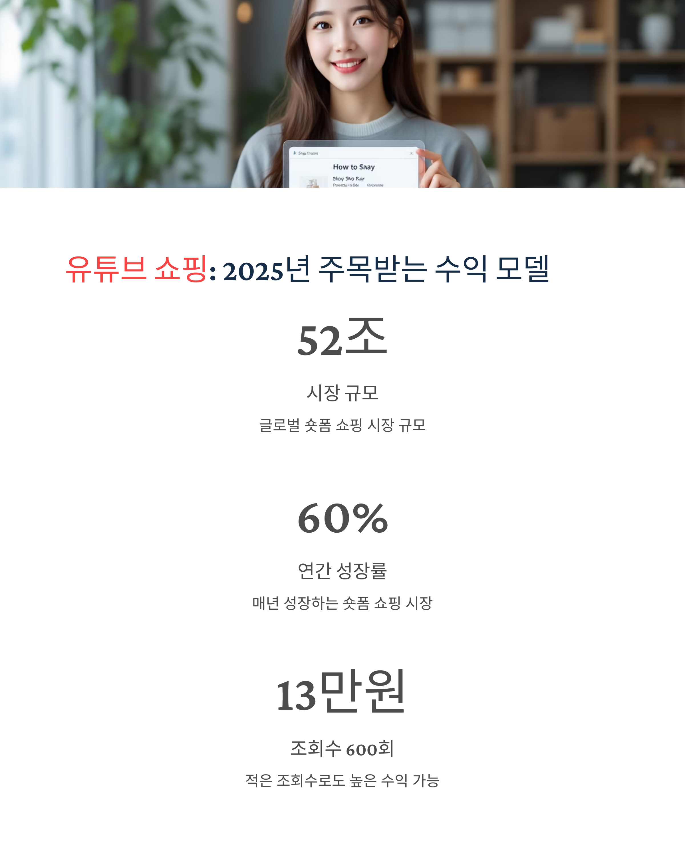 성장 전망: 글로벌 숏폼 쇼핑 시장은 약 52조 원 규모로 매년 60%씩 성장 중