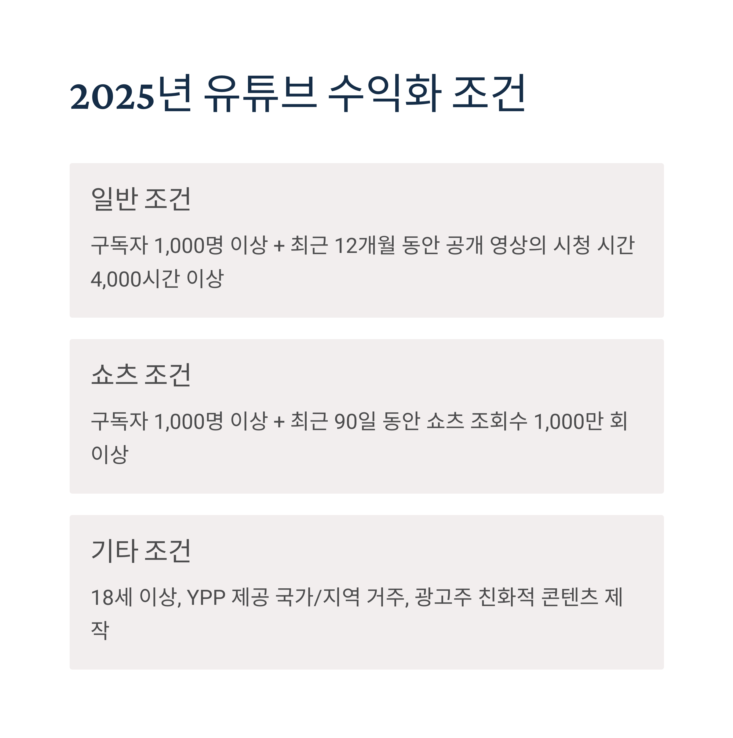 쇼츠 수익화 조건은 어떻게 돼요?