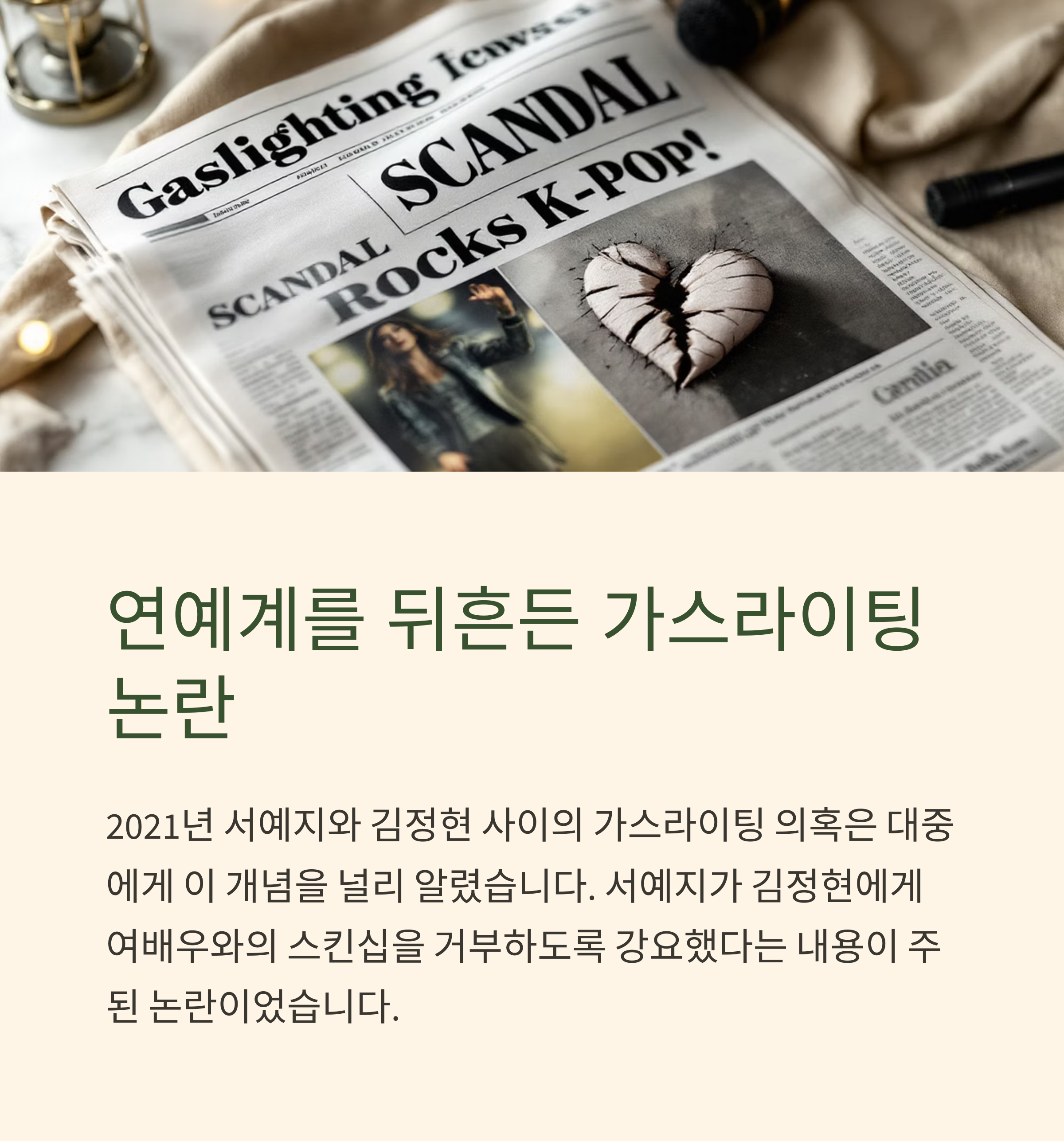 사람과의 관계 속에서 우리는 종종 이유 없이 죄책감을 느끼거나, 자신의 기억과 판단을 의심하게 되는 순간을 경험합니다. 이러한 심리적 혼란은 단순한 오해일 수도 있지만, 지속적으로 반복된다면 '가스라이팅'이라는 정서적 조작일 수 있습니다. 이번 글에서는 심리학적 관점에서 벗어나 최근 뉴스와 사회적 현상을 통해 가스라이팅의 실체를 파헤쳐보겠습니다.