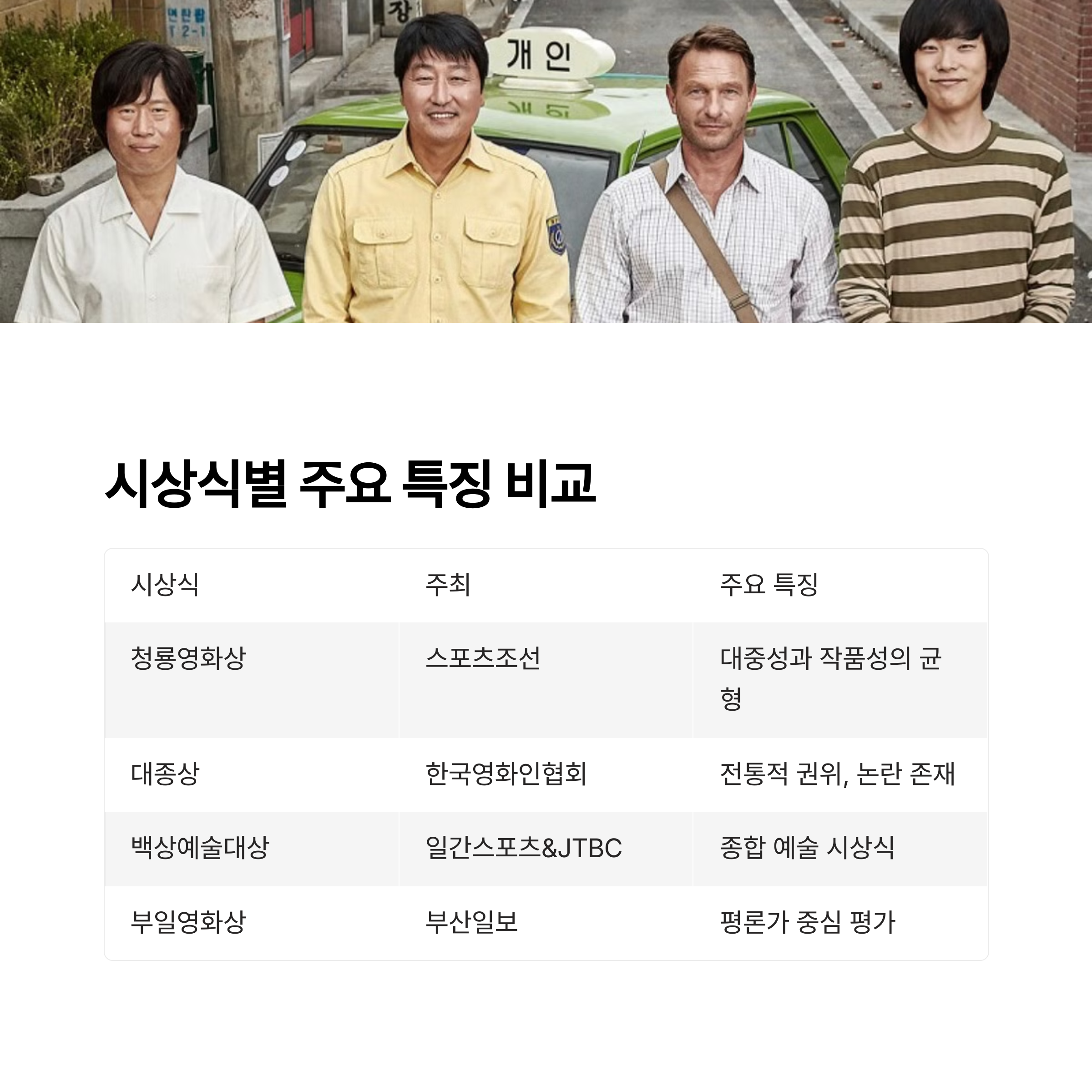 특징과 차별점을 살펴보고 각 시상식이 가지는 영화계 내 위상을 정리해드립니다.