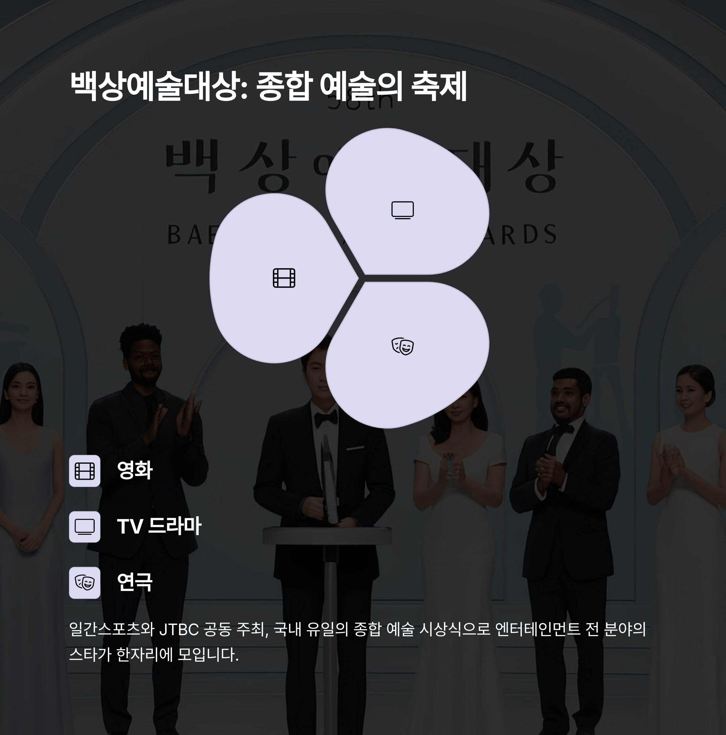 영화뿐 아니라 TV 드라마, 연극까지 포괄하는 국내 유일의 종합 예술 시상식입니다.