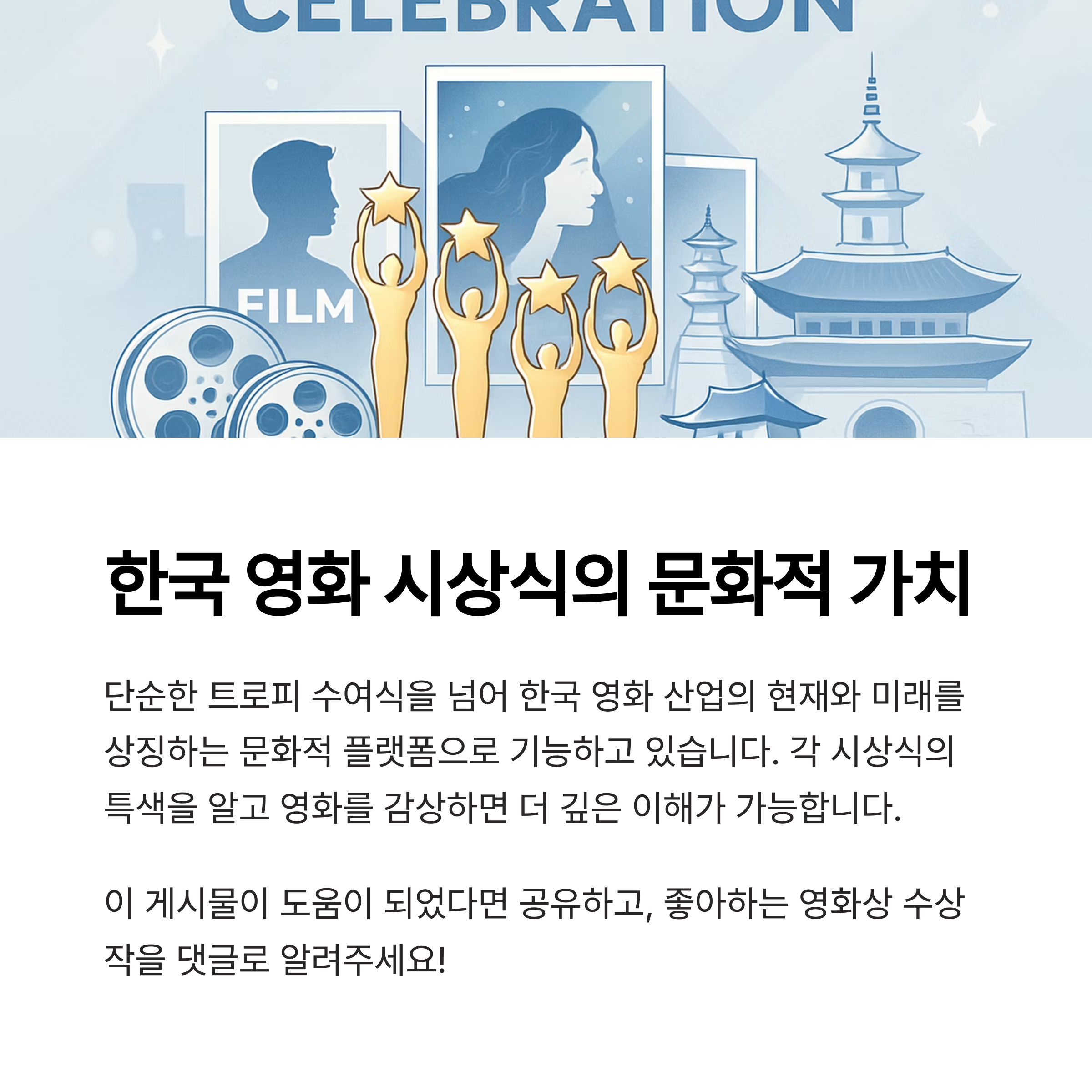 이 글에서는 한국 4대 영화 시상식으로 불리는 청룡영화상, 대종상 영화제, 백상예술대상, 부일영화상의
