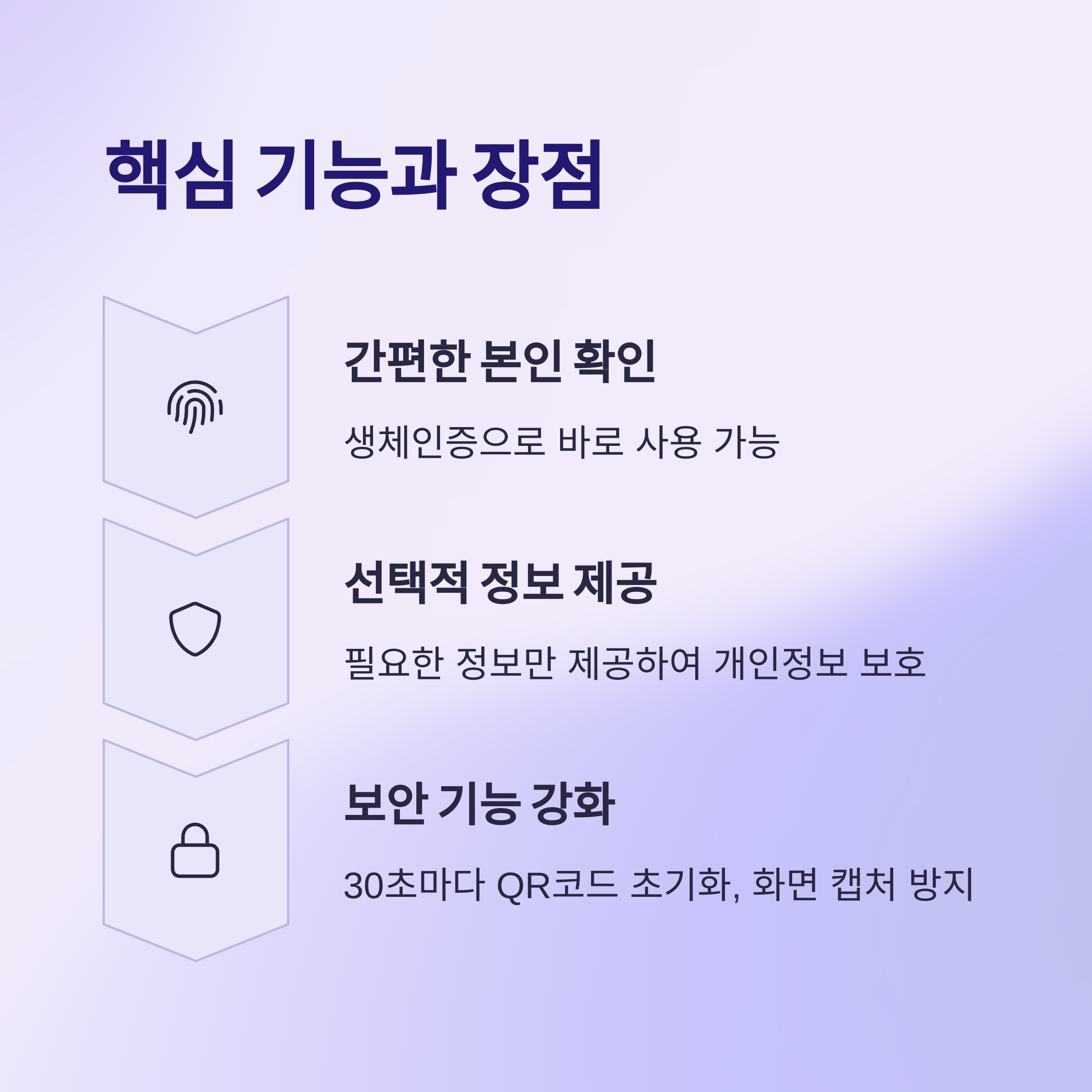 필요한 정보만 제공할 수 있어 불필요한 개인정보 노출을 방지합니다. 예를 들어, 성인 인증 시 이름과 생년월일만 표시하고 다른 정보는 숨길 수 있습니다.