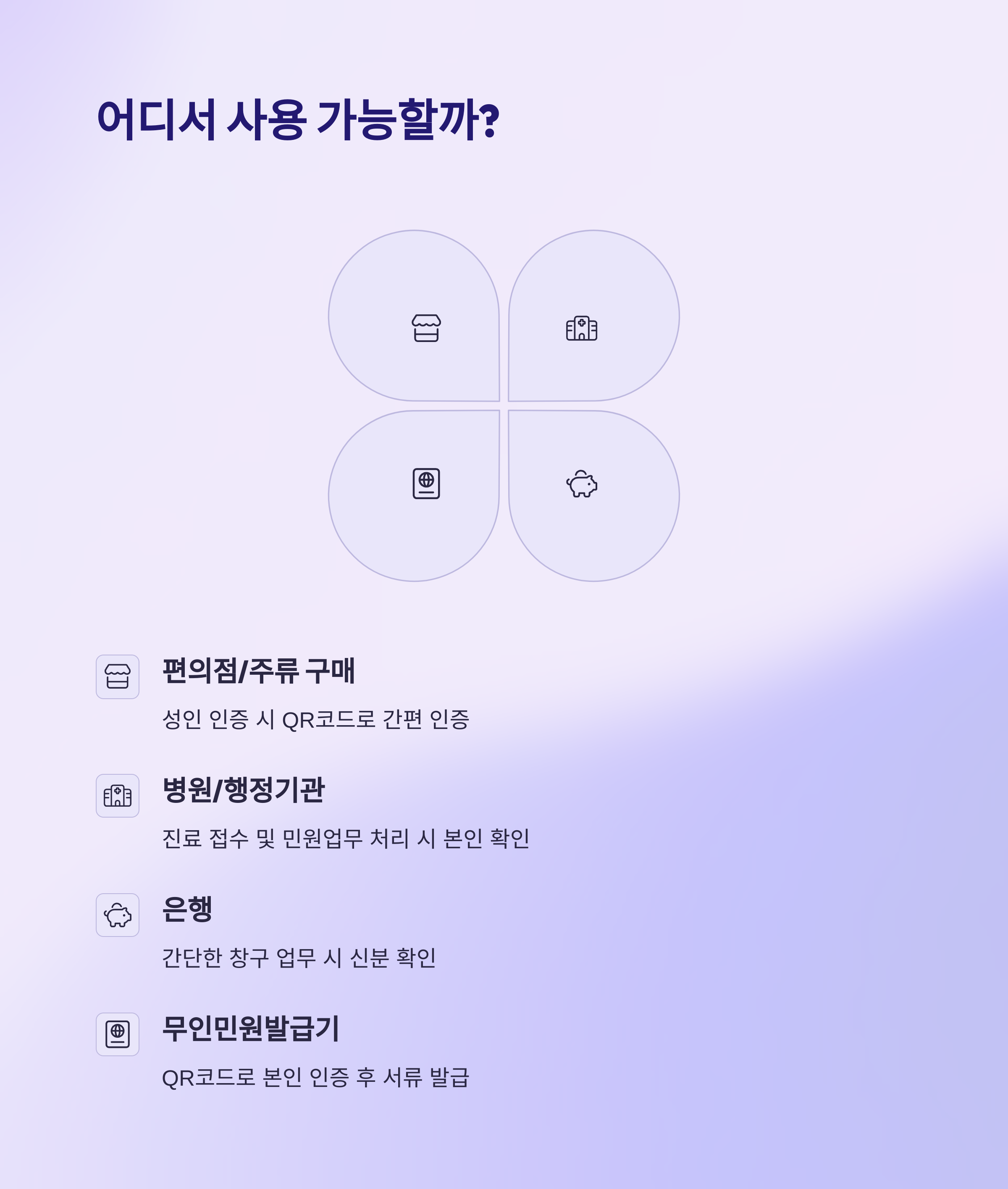 - 편의점/주류 구매: 성인 인증 필요 시 QR코드를 통한 간편 인증