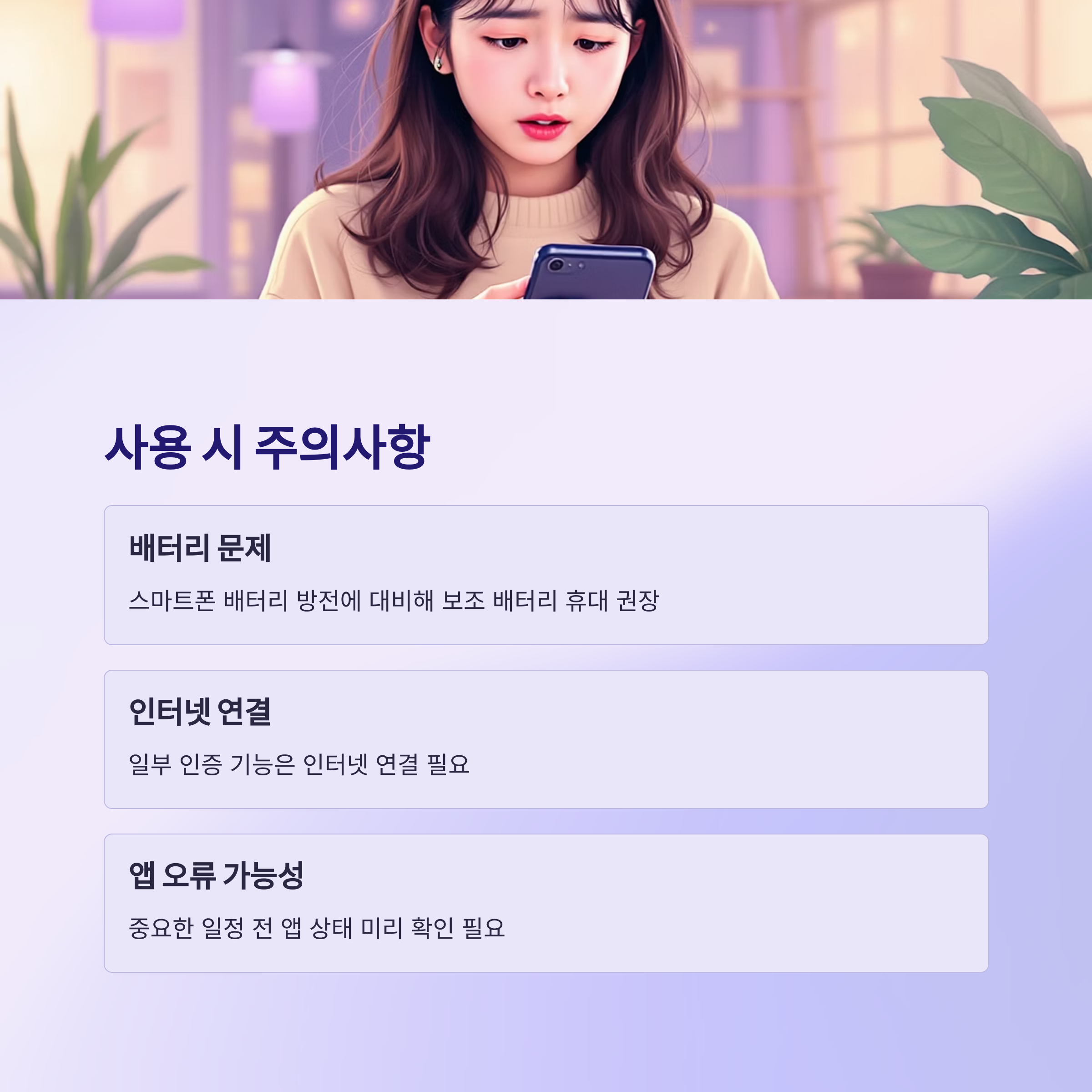 - 앱 오류 가능성: 중요한 일정 전에는 앱 상태를 미리 확인하세요.