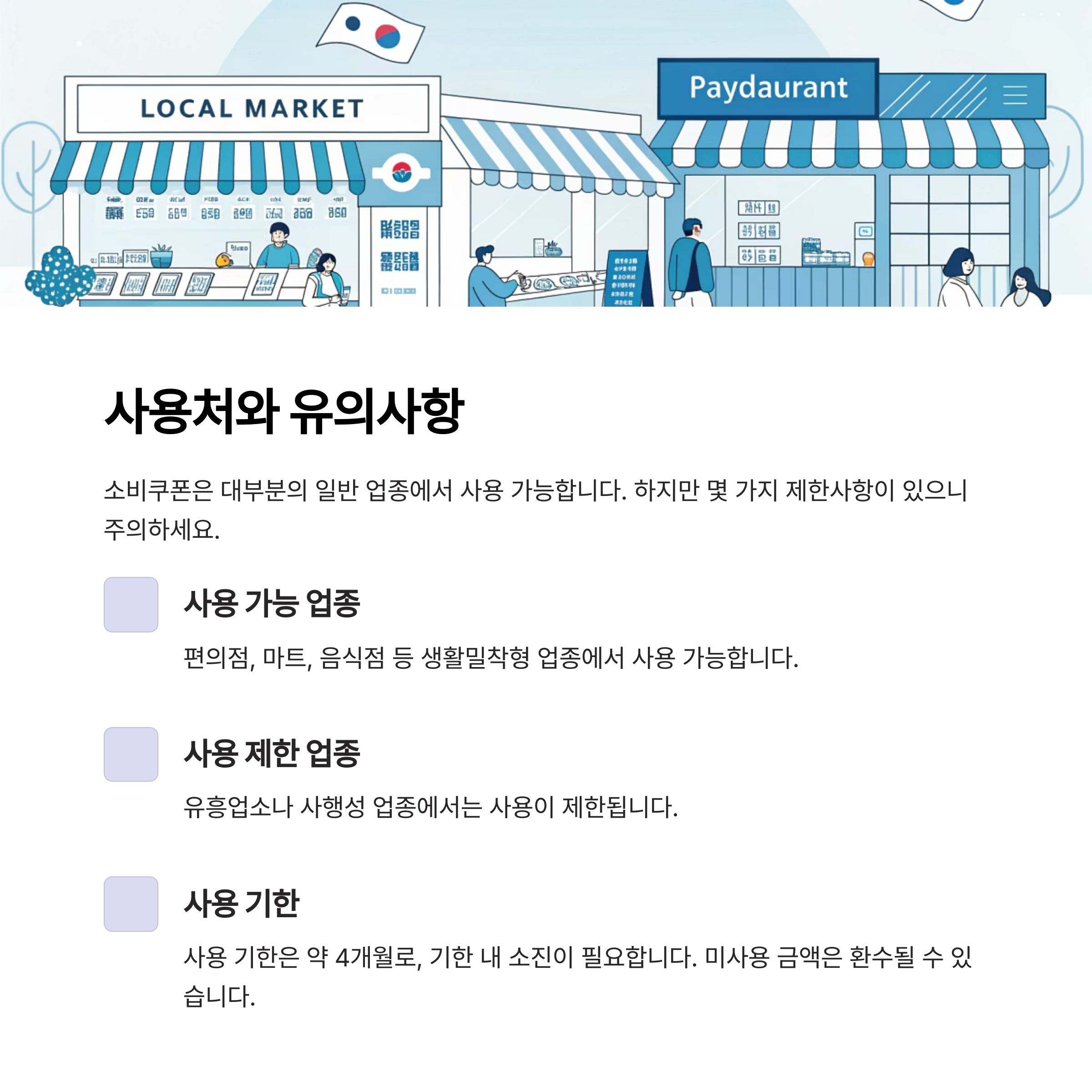 소비쿠폰은 대부분의 일반 업종에서 사용 가능합니다.