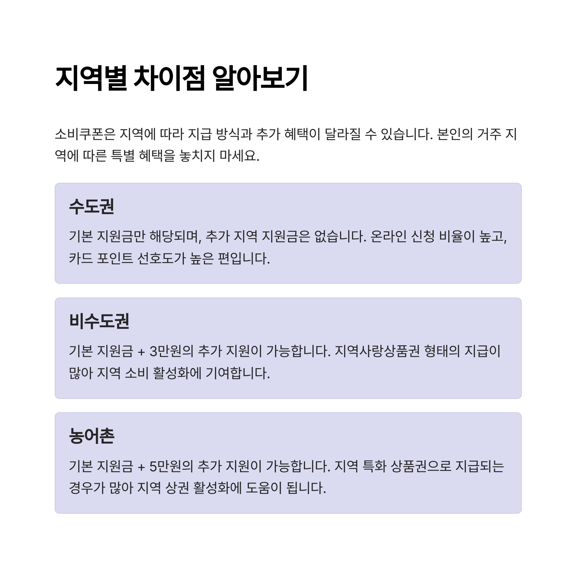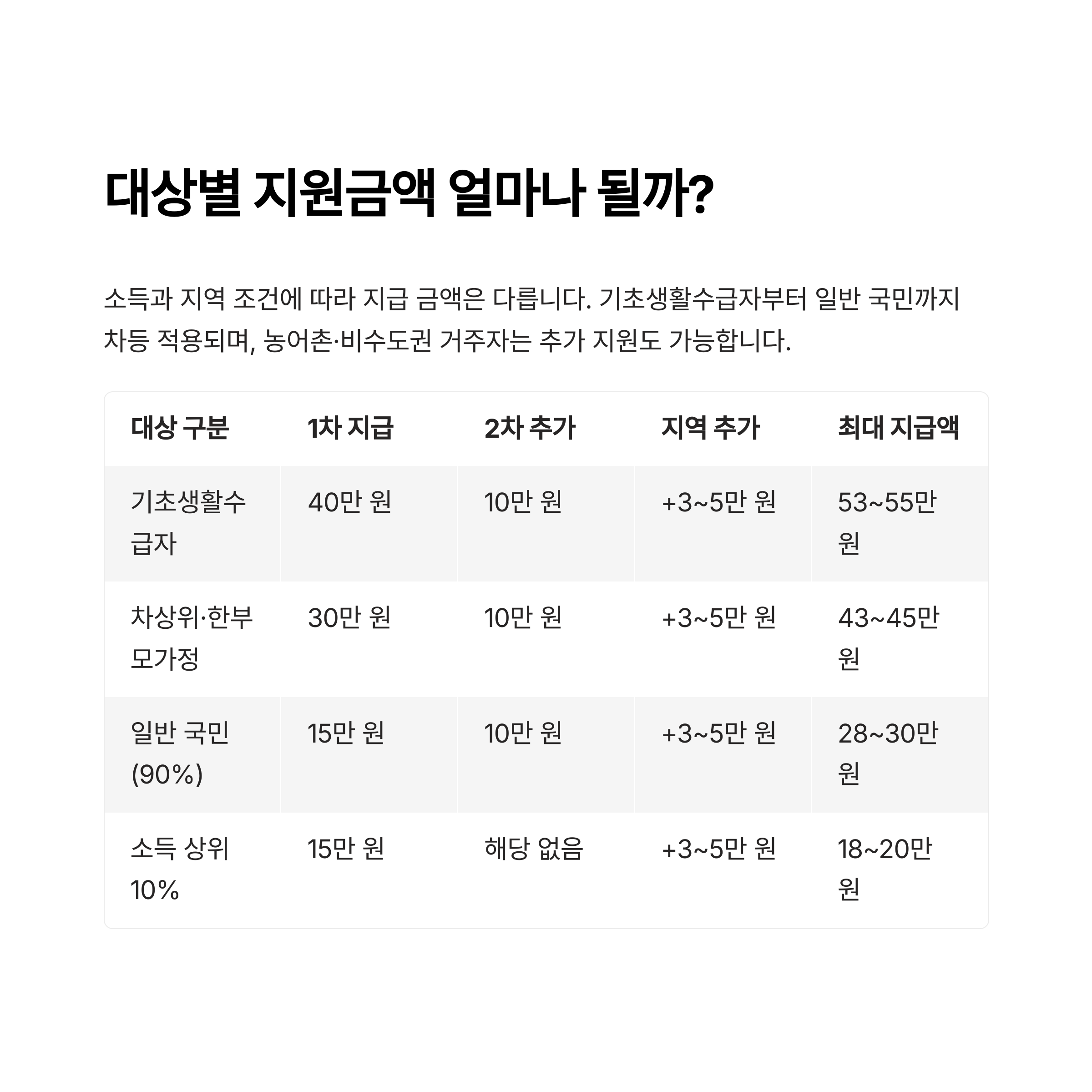 - 지역 추가 확인: 비수도권 및 농어촌 추가 지급 대상 확인