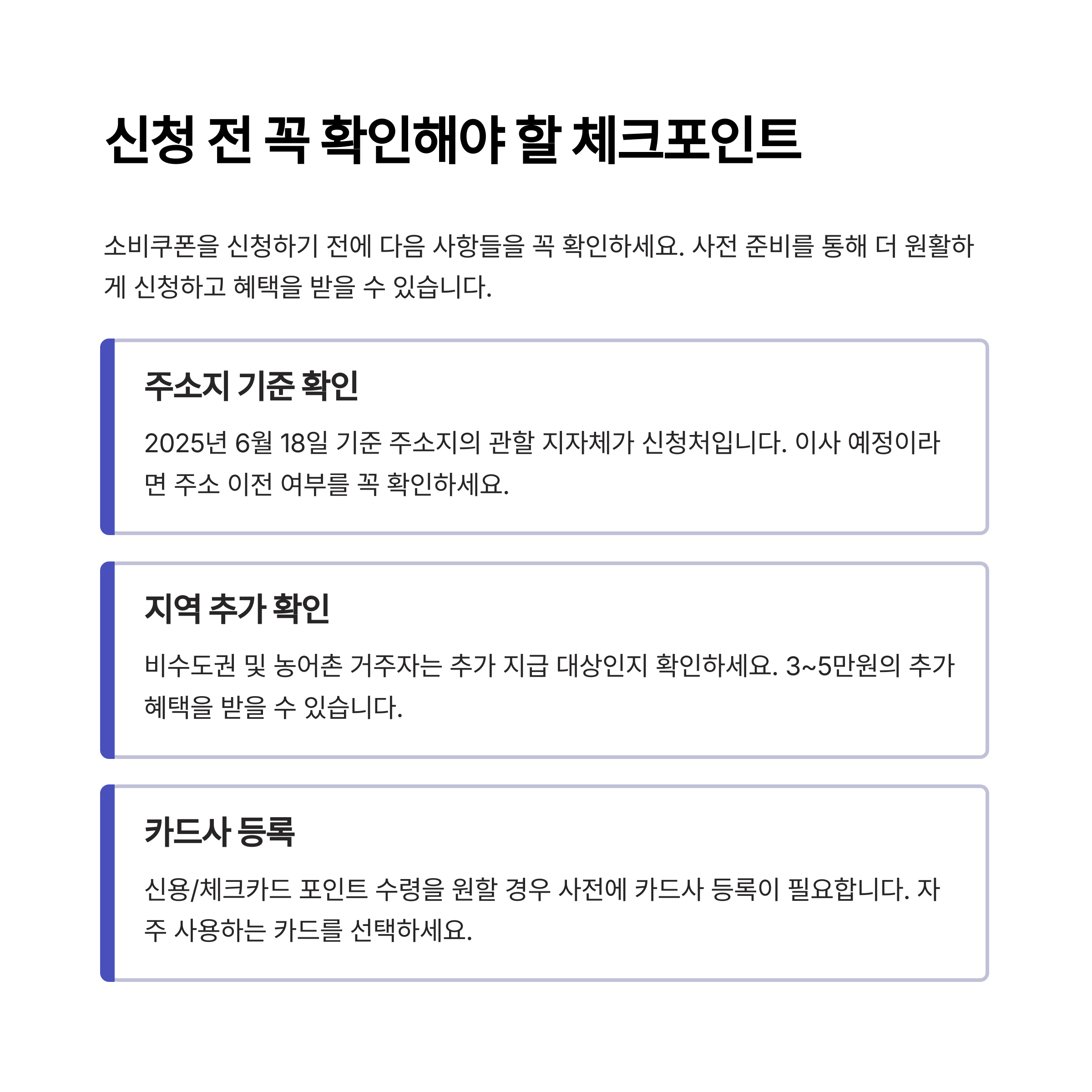 - 지자체 홈페이지 확인: 각 지역별 신청 방법·지급 수단 상이