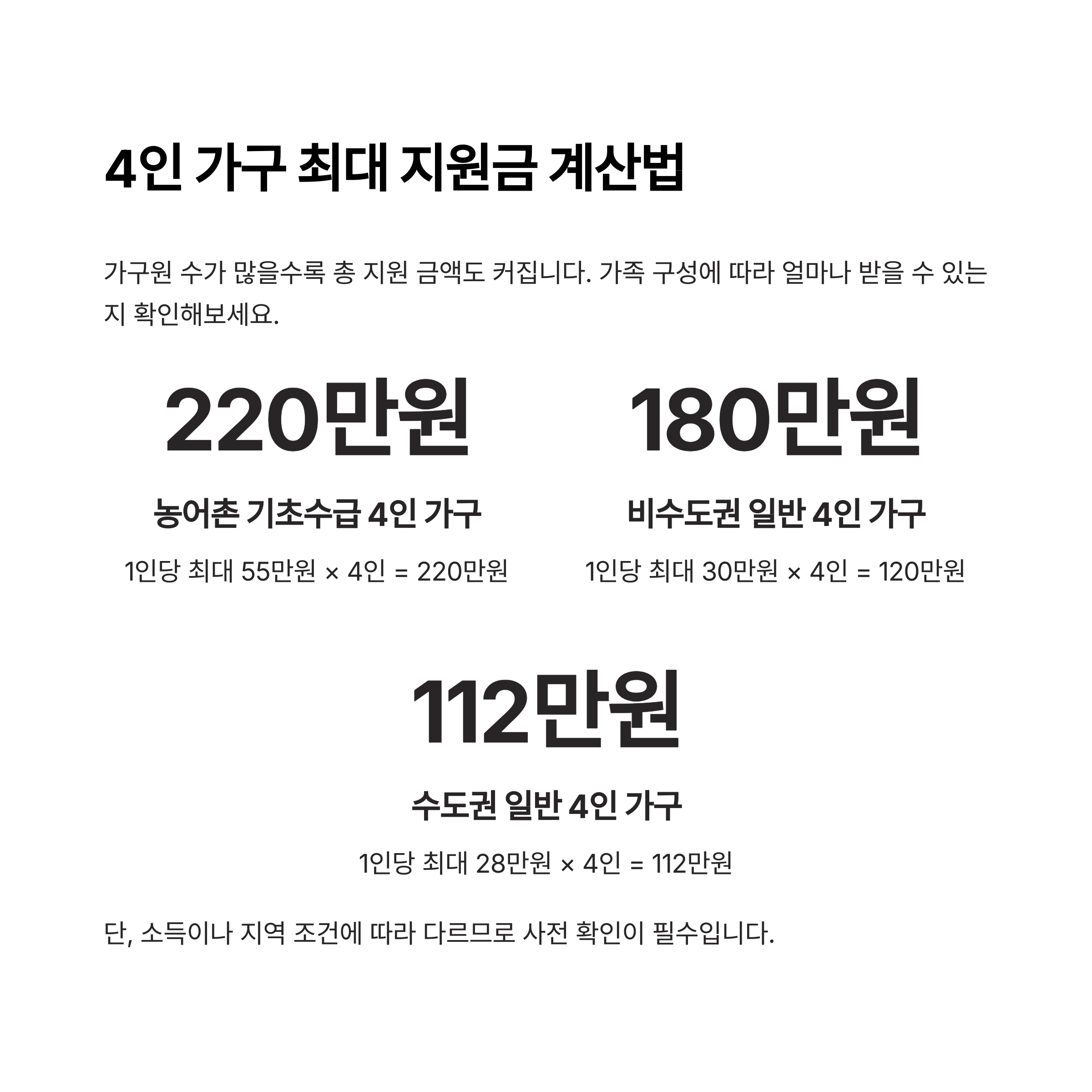 가구원 수가 많을수록 총 지원 금액도 커집니다.