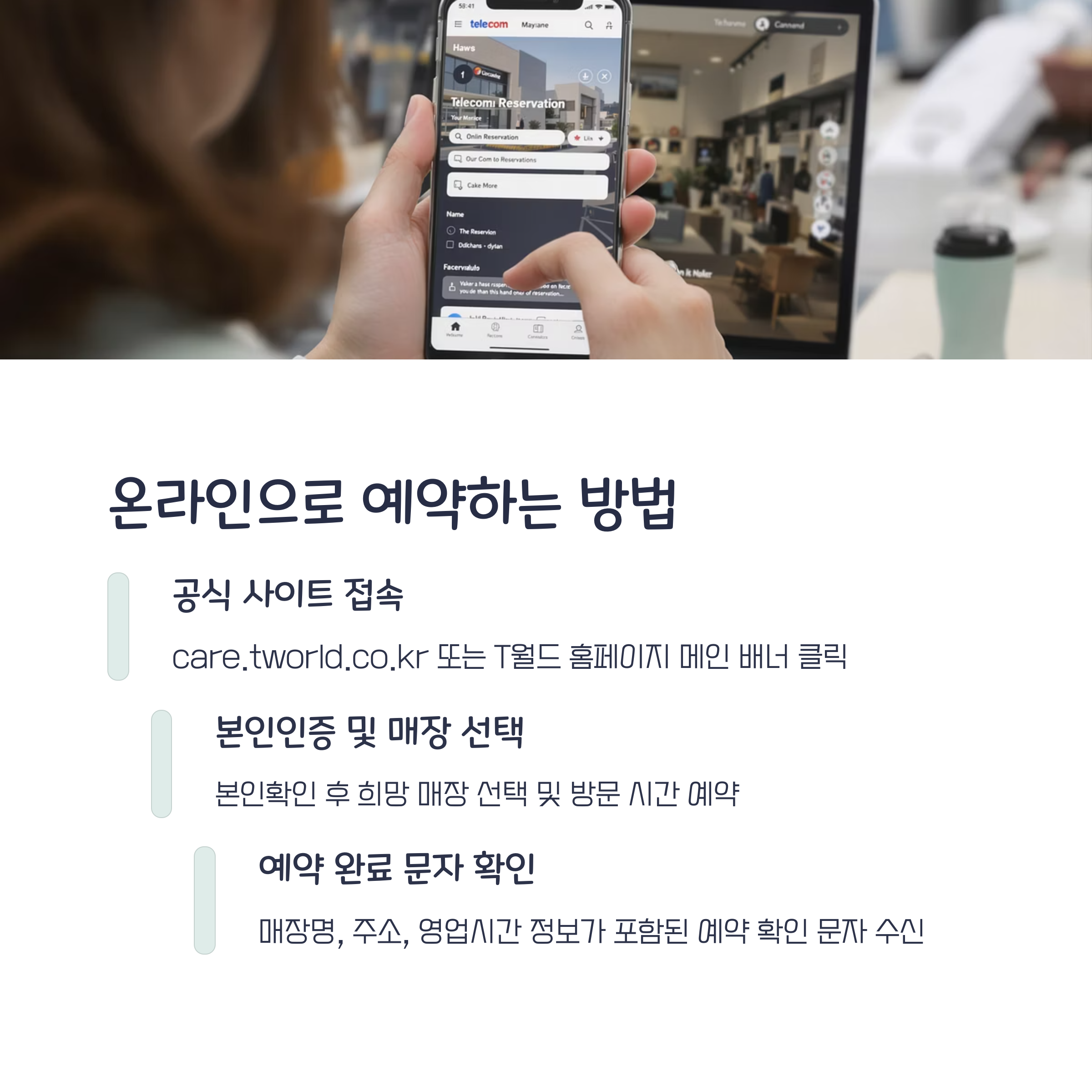 온라인 예약이 어렵다면 가까운 T월드 매장을 방문하세요.