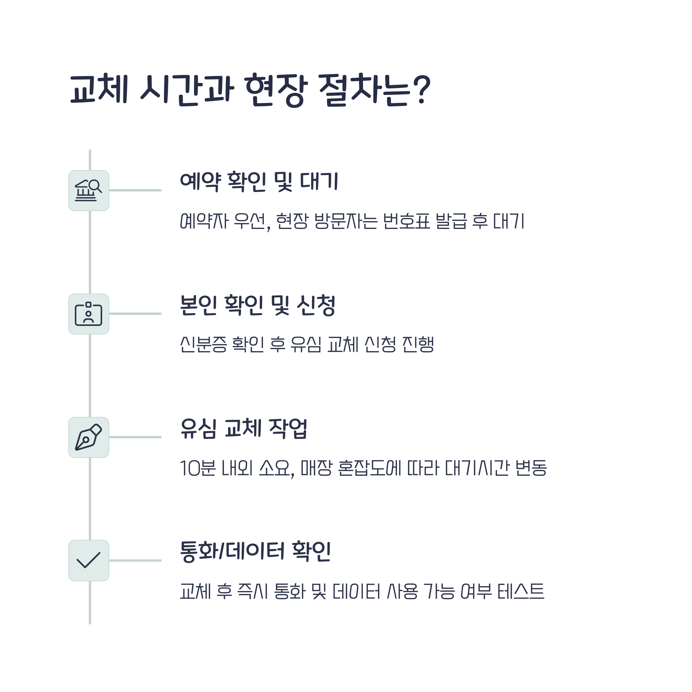 - 온라인 예약 방문 시: 평균 10~20분 내 교체 완료