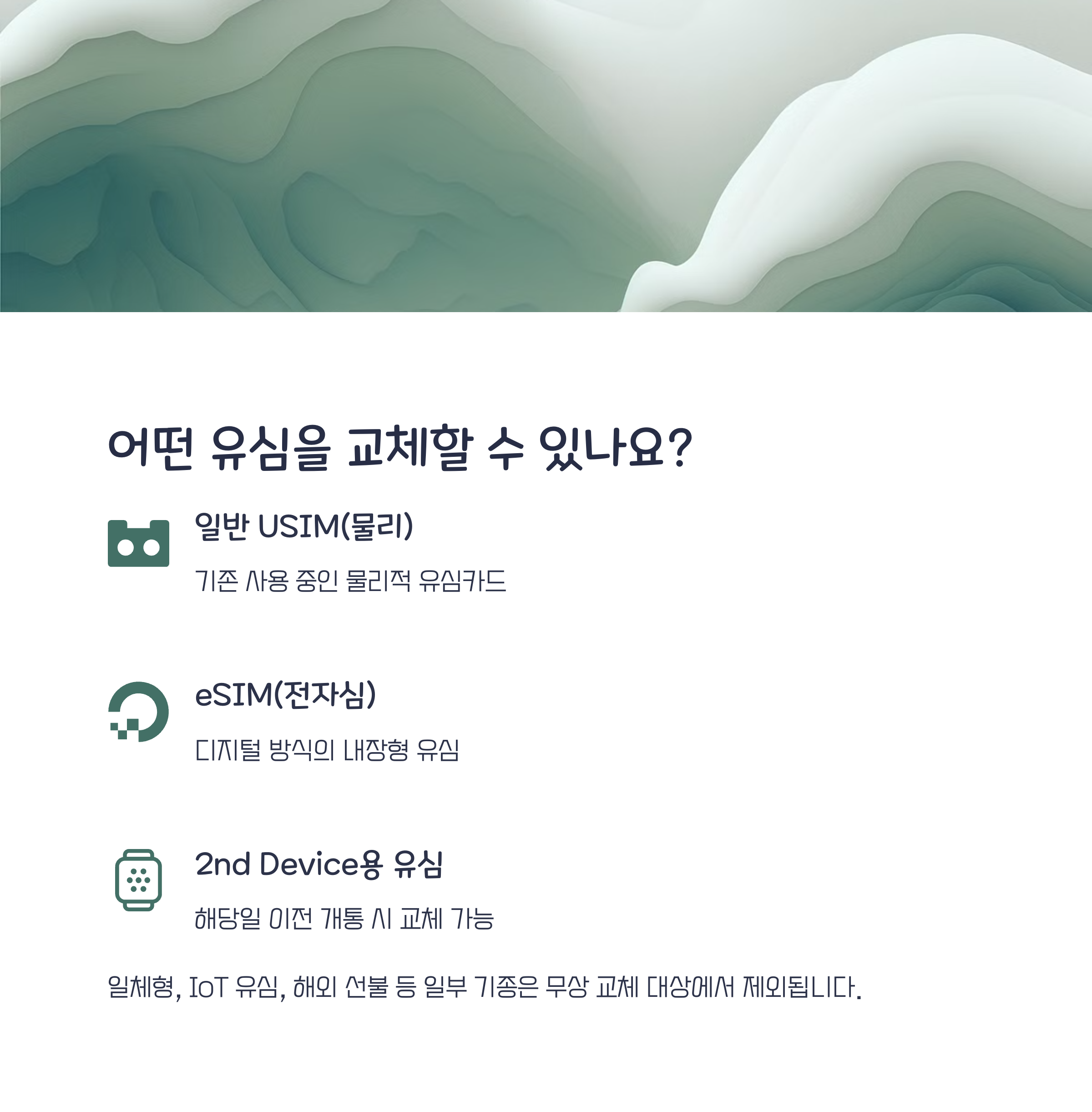 구형 2G/3G 유심, 일부 키즈폰·워치 전용 유심은 교체 대상에서 제외될 수 있습니다.