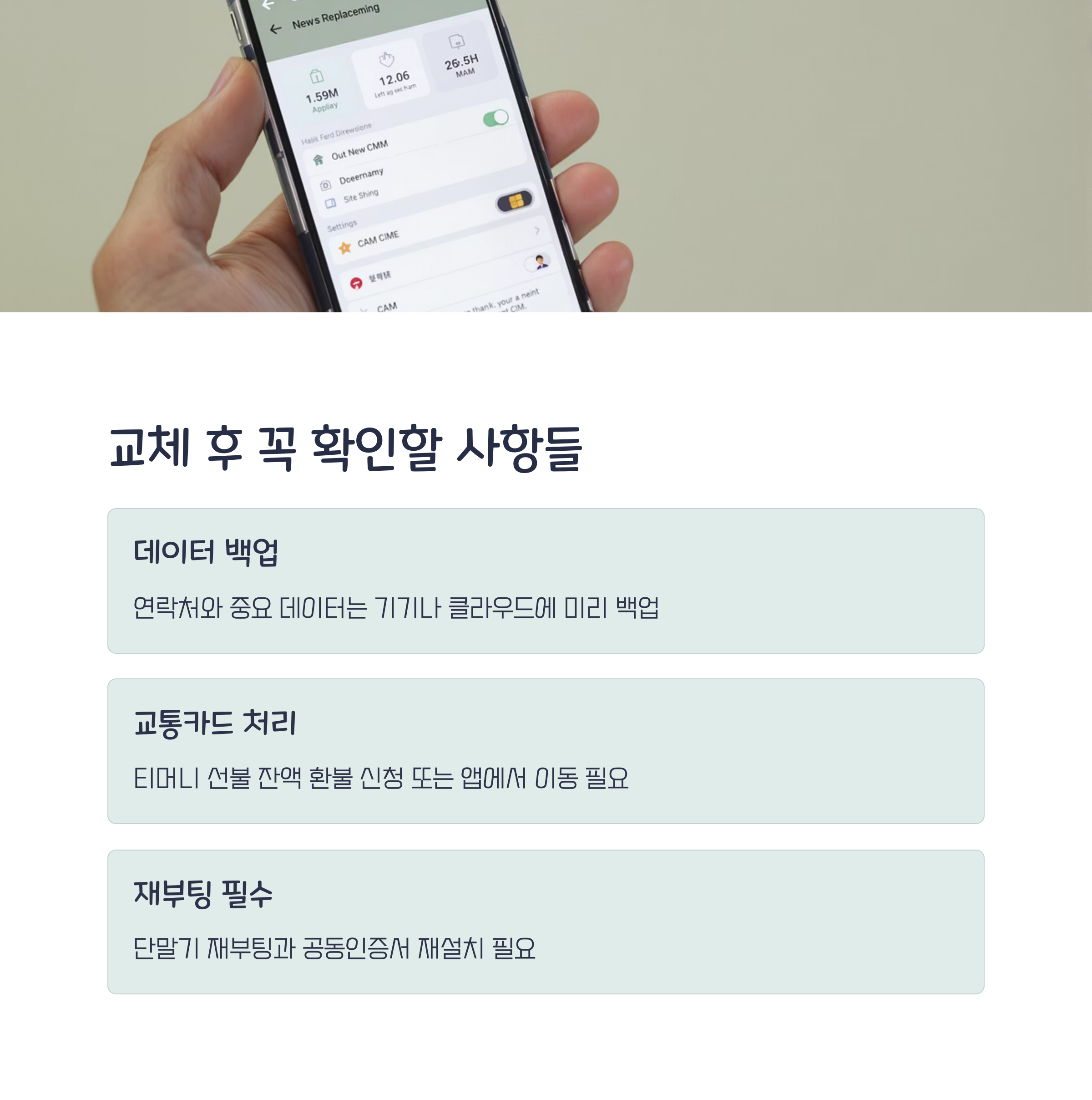 유심 교체 후 꼭 해야 할 일은 다음과 같습니다.
