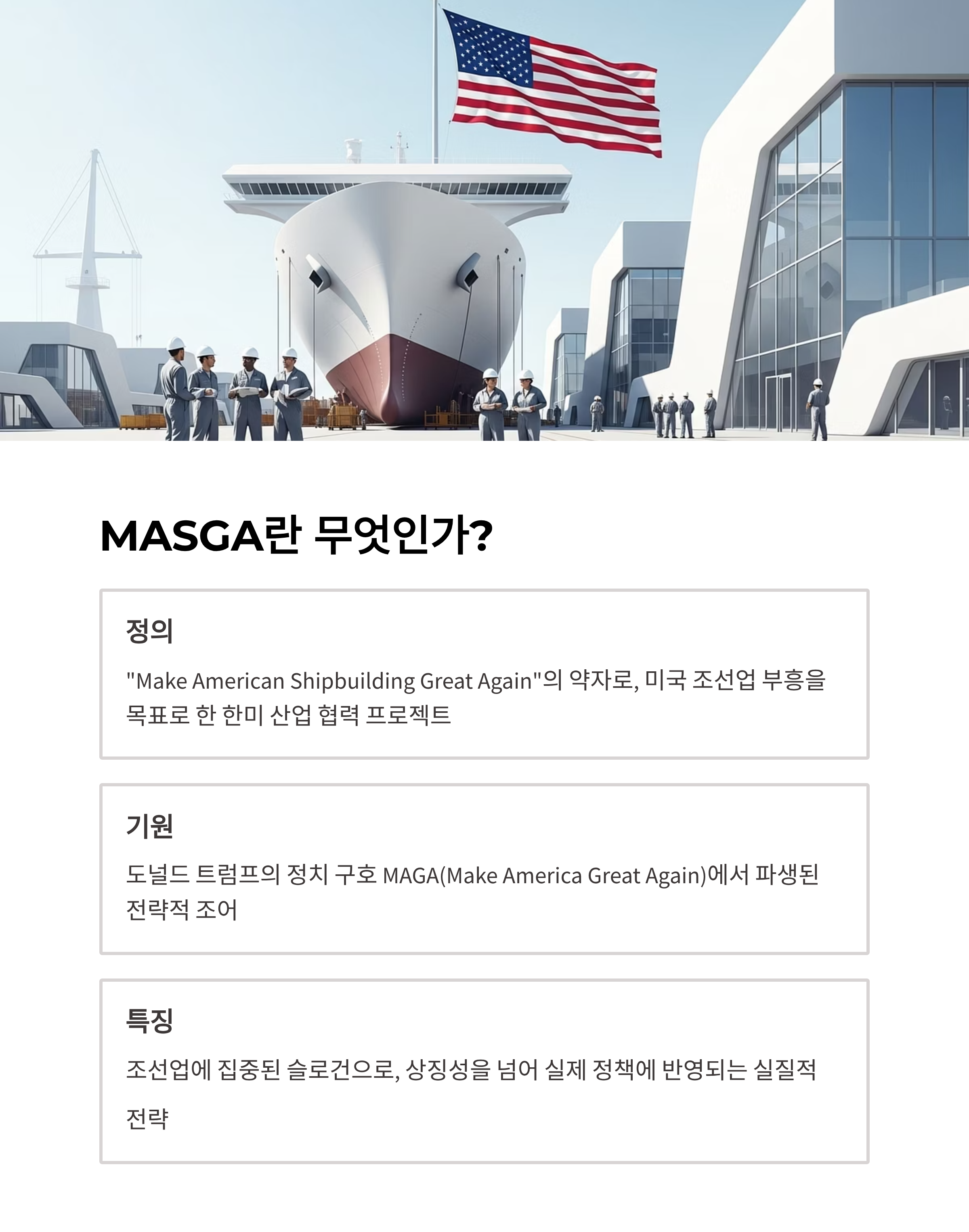 MASGA는 “Make American Shipbuilding Great Again”의 약자로, 미국 조선업의 부흥을 목표로 한