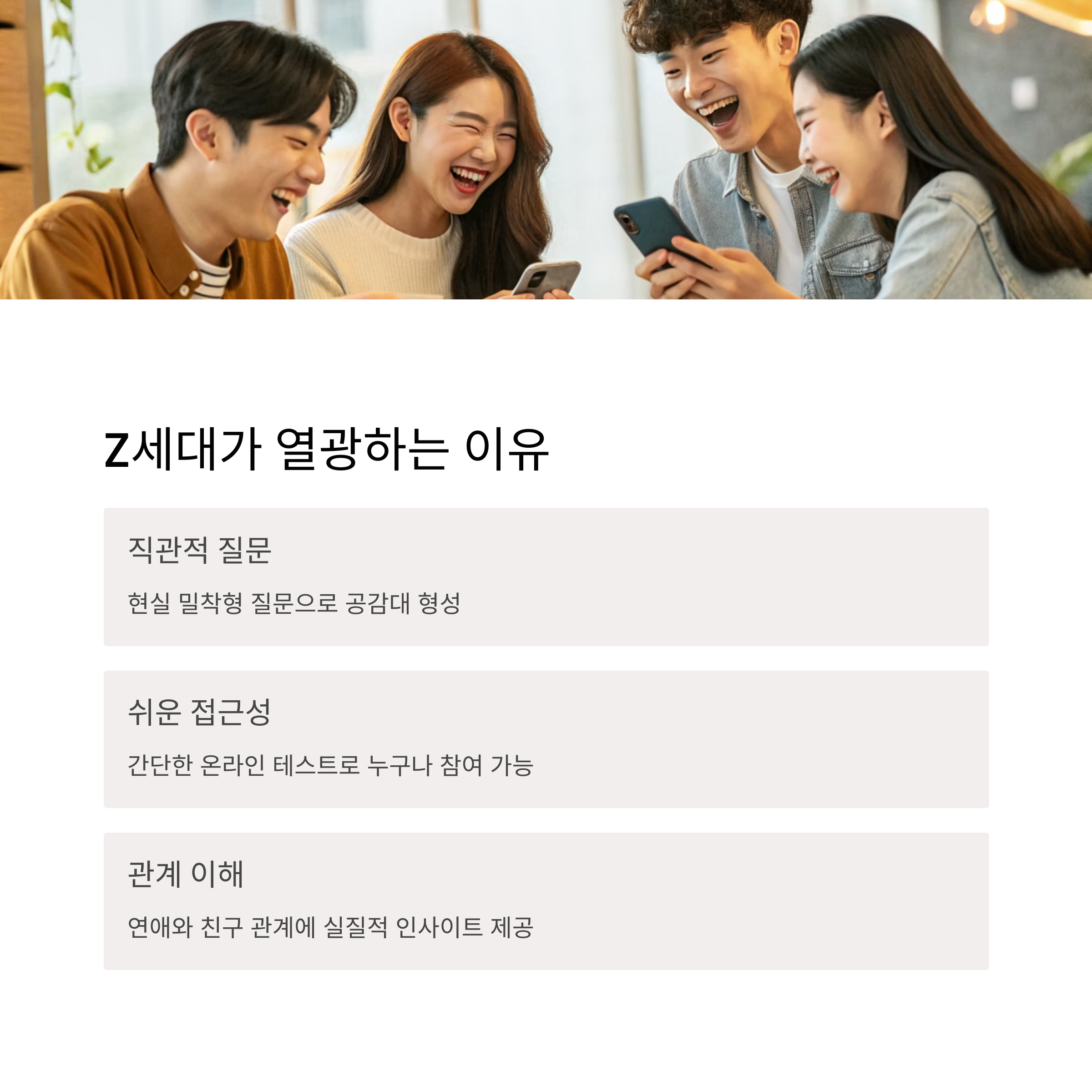 현실 밀착형 질문이 많아, 특히 연애나 친구 관계에서 스스로를 되돌아보는 계기가 됩니다.