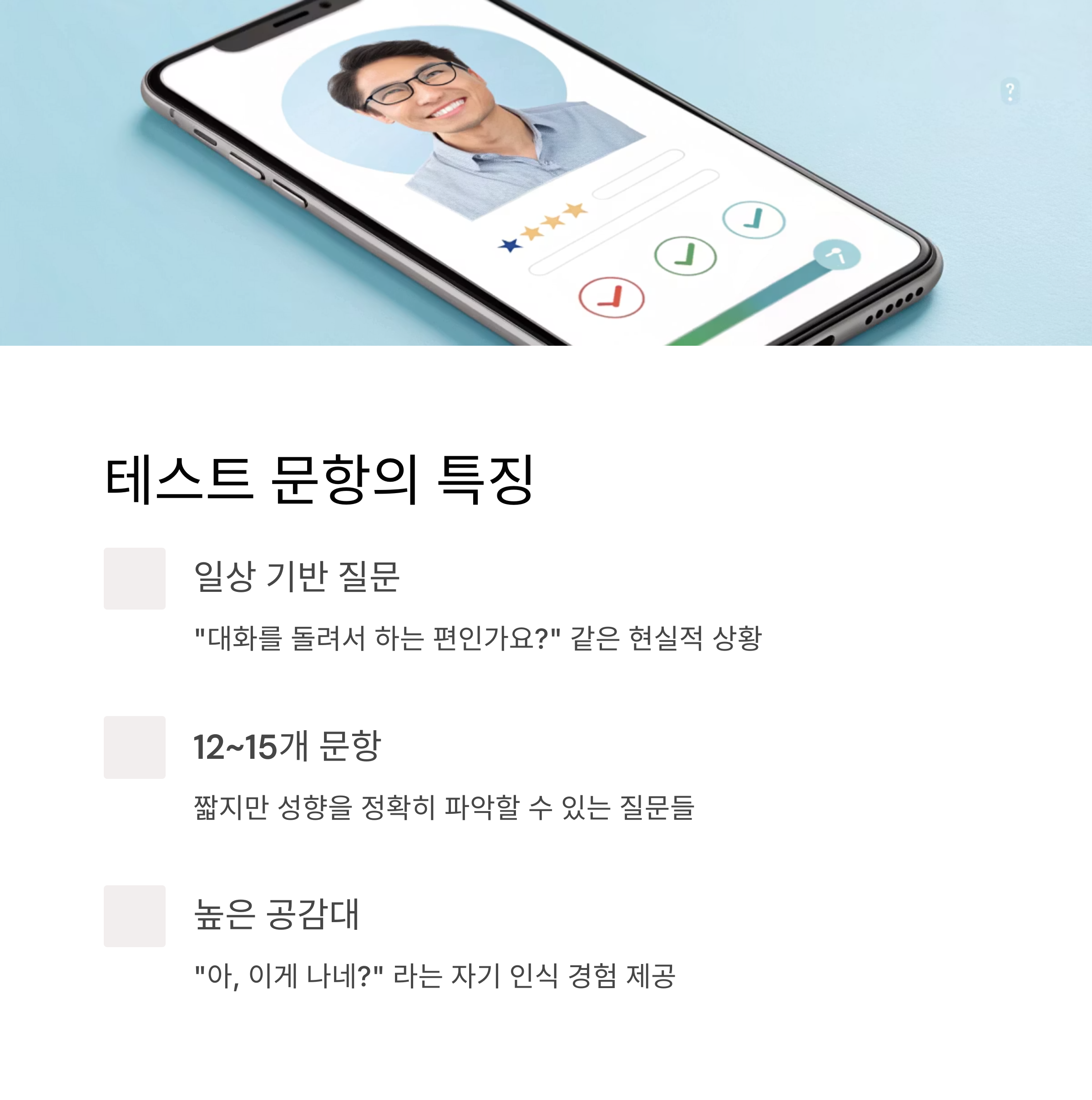 또한 간단한 온라인 테스트 형식으로 누구나 쉽게 접근할 수 있다는 점도 매력 포인트입니다.